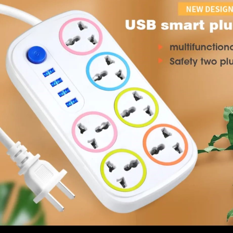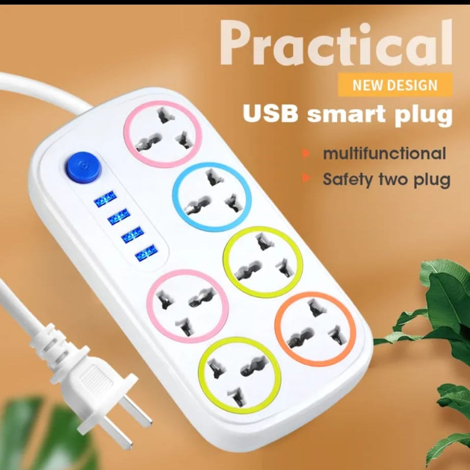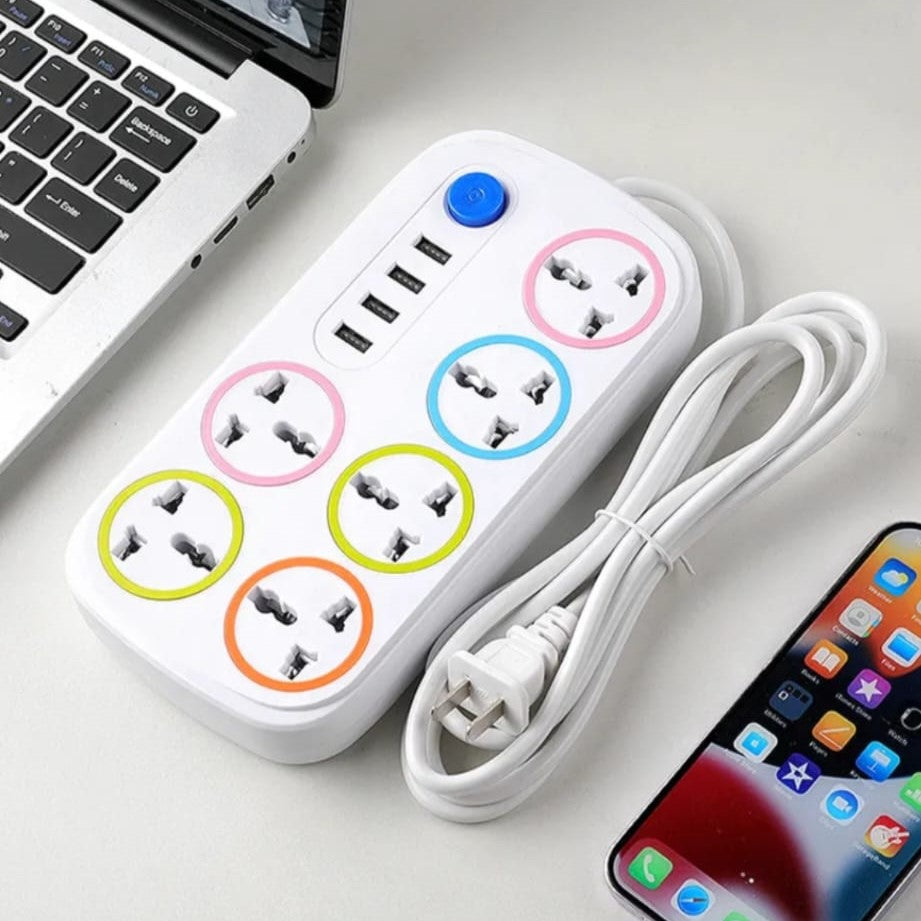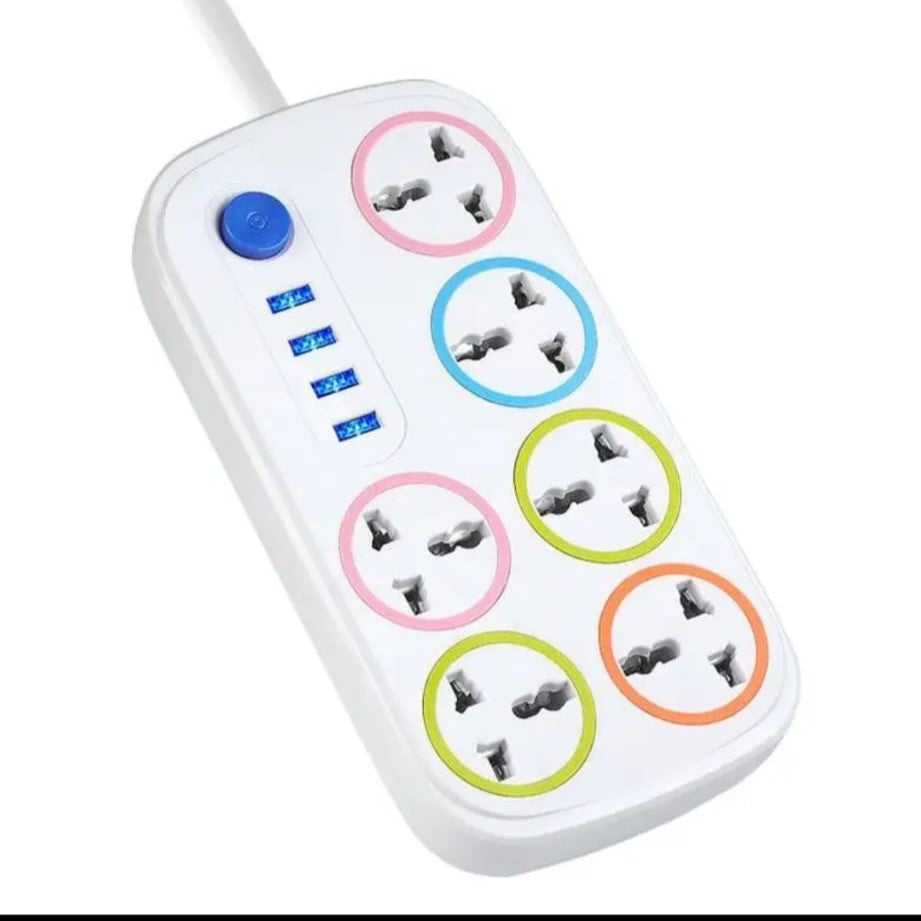 UNIVERSAL EXTENSION SOCKET WITH 4 USB SURGE PROTECTOR POWER STRIP PLUGS SOCKETS 6 WAY POWER STRIP EXTENSION SOCKET. AC100-250 VOLTAGE. 10 AMPS CURRANT.