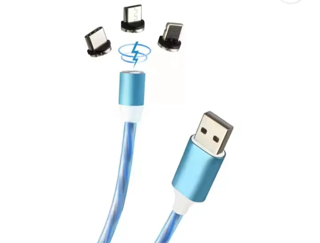 FAST CHARGING LED LIMINOUS MAGNETIC USB CHARGER CABLE FOR IPHONE AND ANDROID AND SUTABLE DEVICES DURABLE PURE COPPER MATTERIAL.