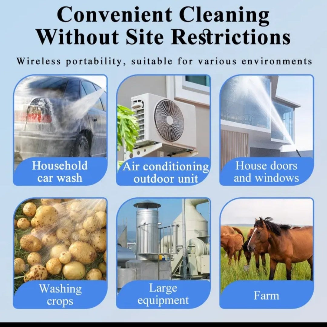 Wireless High Pressure Car Wash Machine. Powerful Long Endurance Lithium Battery Cordless Water Jet Foam Gun Portable Power Wash.