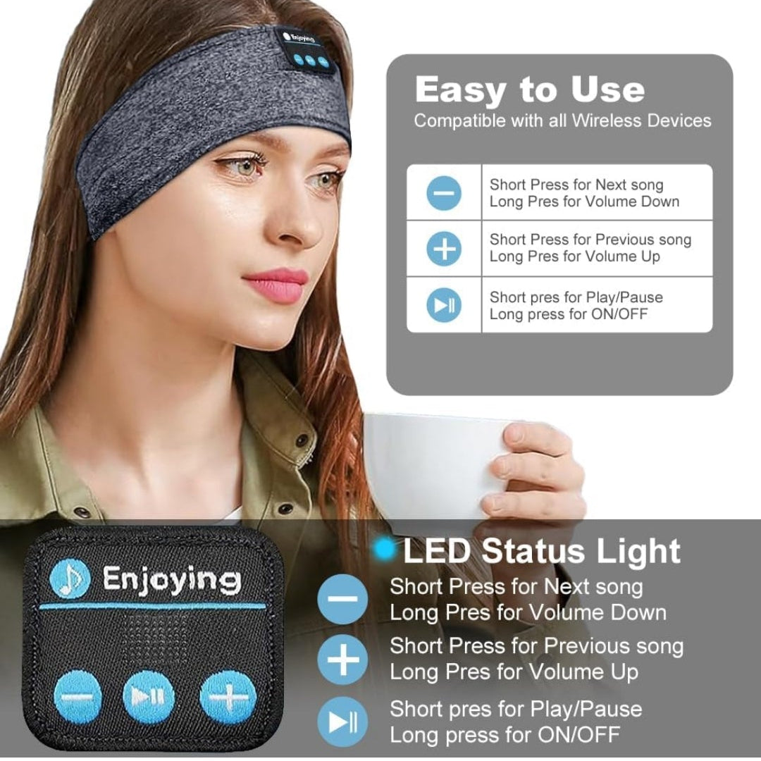 Enjoy comfort during sleep and workouts with this ultra-soft Bluetooth headband featuring built-in HD stereo speakers. Perfect for sports and side sleepers, it lets you listen to music or relax without compromising comfort or wireless convenience.