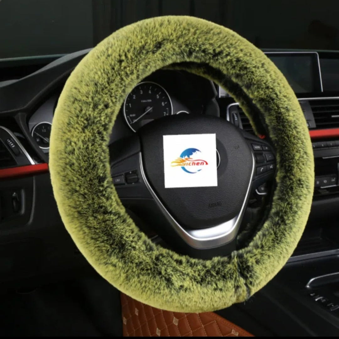 Universal fit car accessory featuring a soft touch fur steering wheel cover perfect for autumn and winter, providing warmth and comfort while enhancing your vehicle's interior style.